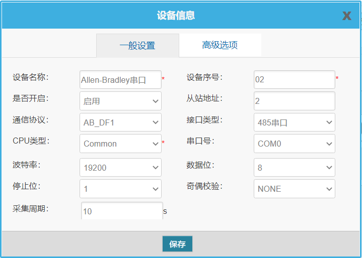 PLC采用网口通信时,变量配置主要填写变量名(网口协议较为特殊,需配置成与PLC内的变量名一致)、变量别名(自定义,建议使用中文),寄存器类型和寄存器地址无需配置(默认即可),可定义一些数据规则(如:倍率、小数点、单位、报警规则等)。