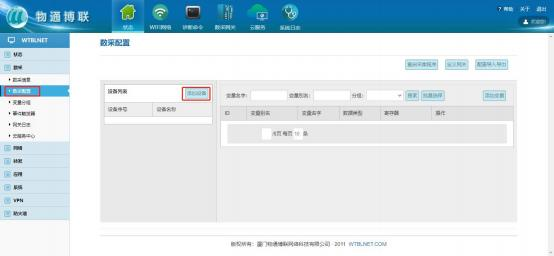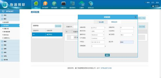 登录网关管理界面,点击数采->数采配置->添加设备。