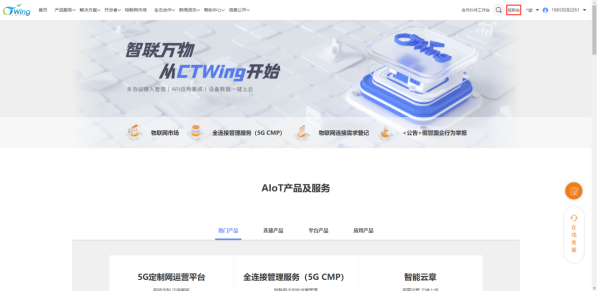 打开http://www.ctwing.cn/(天翼物联网)网页,顺利获得天翼物联网平台账号登录CTWing。