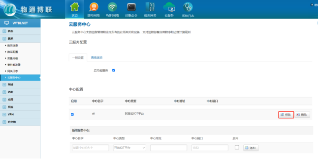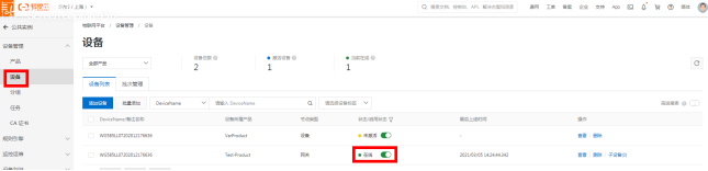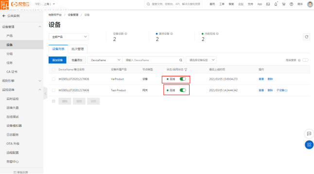 以上填写完成后网关界面点击“保存”,可回阿里云确认网关是否激活在线