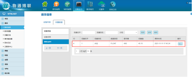 填写完毕后返回网关数据配置界面“添加变量”的数据参数