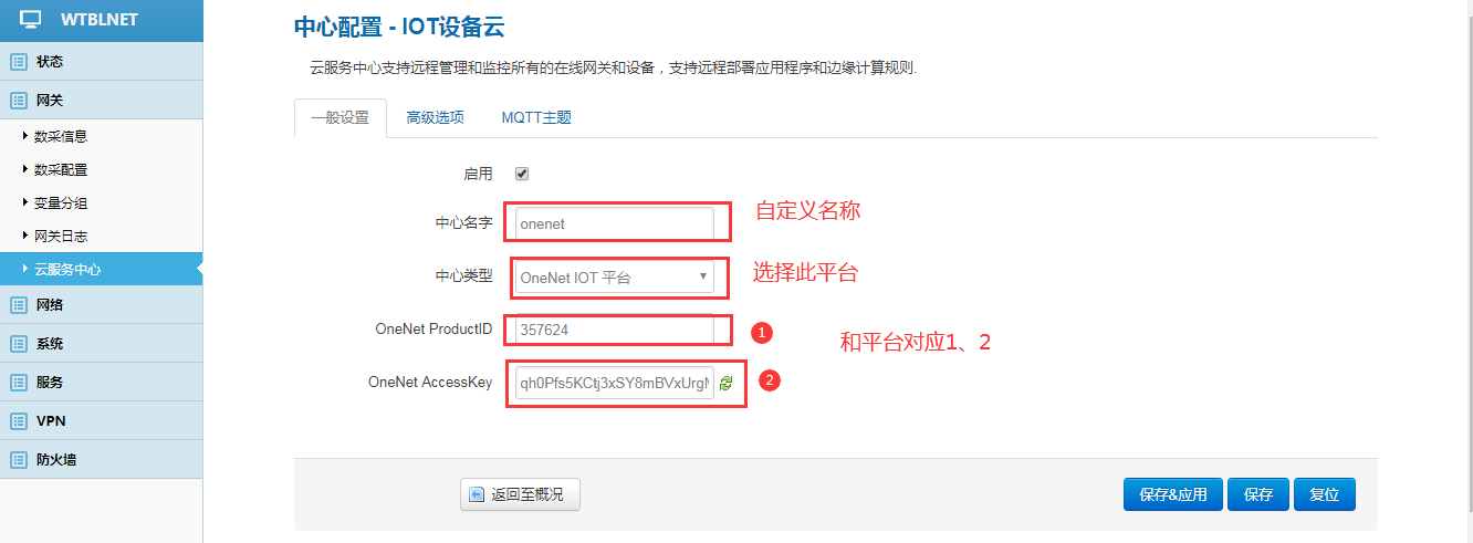 2、配置网关的上网、采集参数