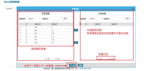 点击“配置转发变量点表”,也进入历史横表字段配置