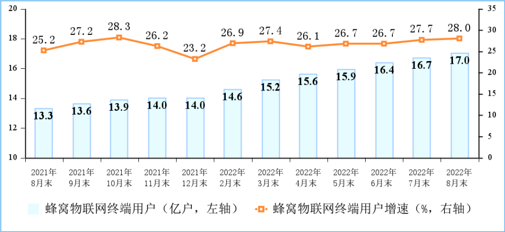 具体而言,在网络能力方面,我国已建成全球规模最大的移动物联网网络,截至2022年8月底,窄带物联网,4G、5G基站总数分别达到75.5万个、593.7万个和210.2万个,多网协同开展、城乡普遍覆盖、重点场景深度覆盖的网络基础设施格局已经形成;