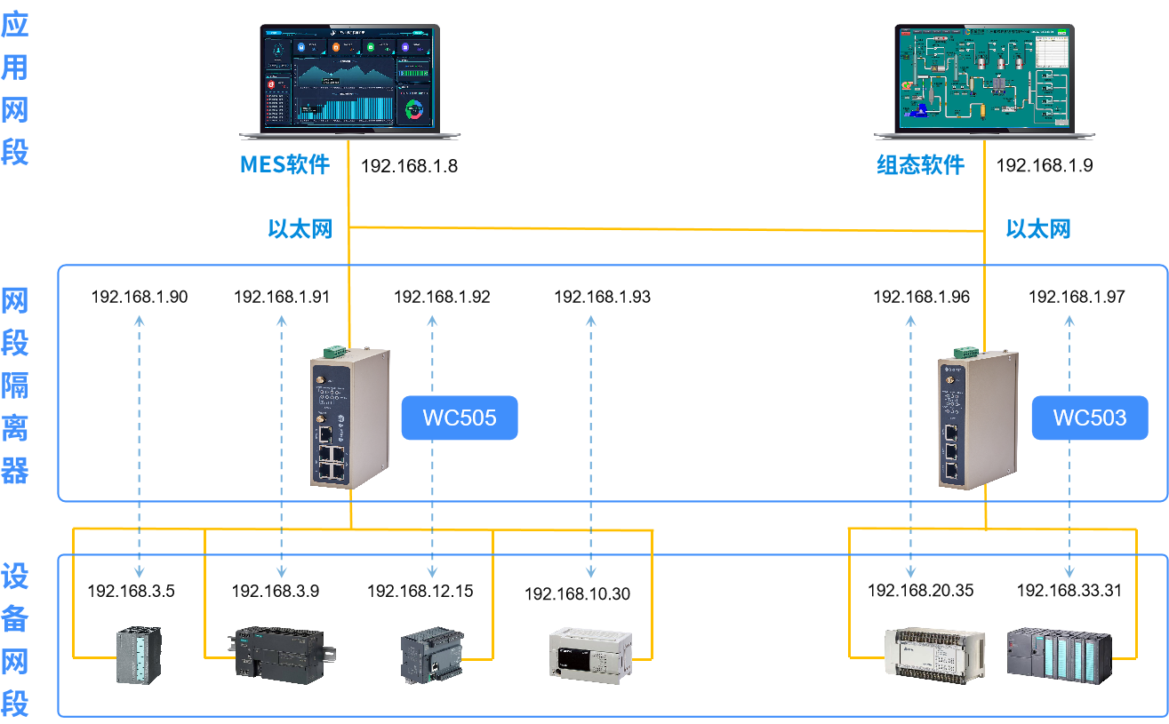 k豆kdpay钱包AIWC系列网段隔离器适用于生产网络对 PLC、HMI、CNC、DCS、MES等网络通讯和数据采集,兼有跨网段隔离和IP转换的功能。车间多个设备,如果有不同网段的IP地址,则可以统一成同一网段的IP地址,进行设备(PLC、CNC)的在线编程、数据采集、远程管理等各种跨网段访问。