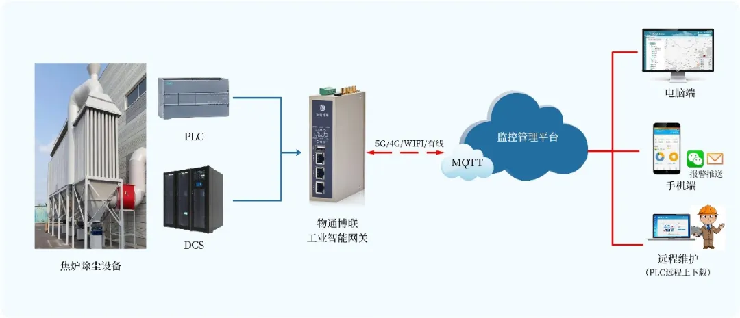顺利获得将焦炉除尘设备数据采集到可视化的管理平台,企业可实现除尘系统的全过程透明化监控、智能化预警与精细化管控,不仅显著提升除尘效率与环保合规水平,还降低了人工巡检成本与故障停机风险,助力企业实现绿色、智能、可持续生产。
